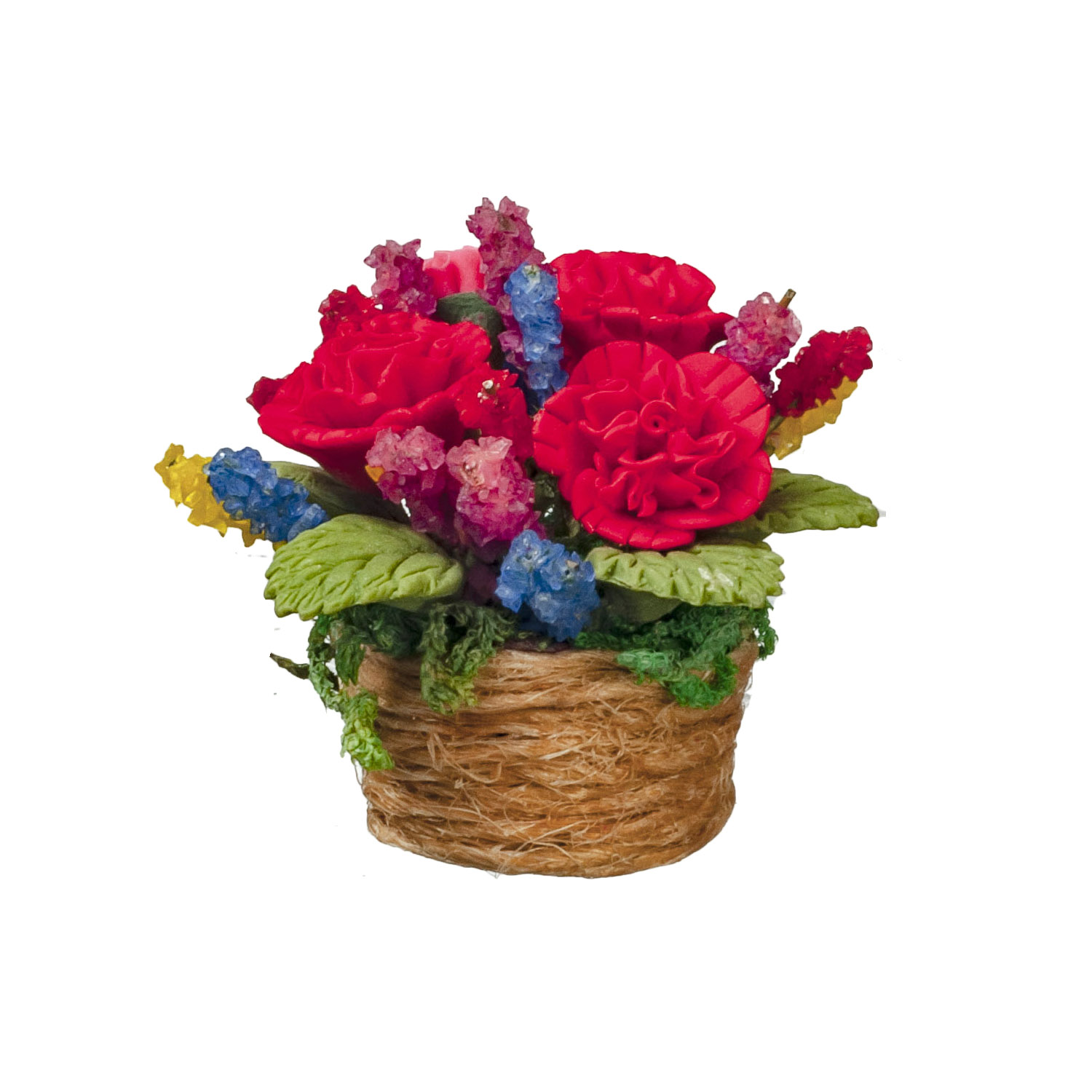 RED CARNATIONS IN BASKET